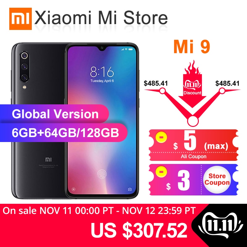 Global Version Xiaomi Mi 9 Mi9 6GB/64GB 6GB/128GB Mobile Phone Snapdragon 855 Octa Core 6.39" AMOLED Display 48MP AI Triple