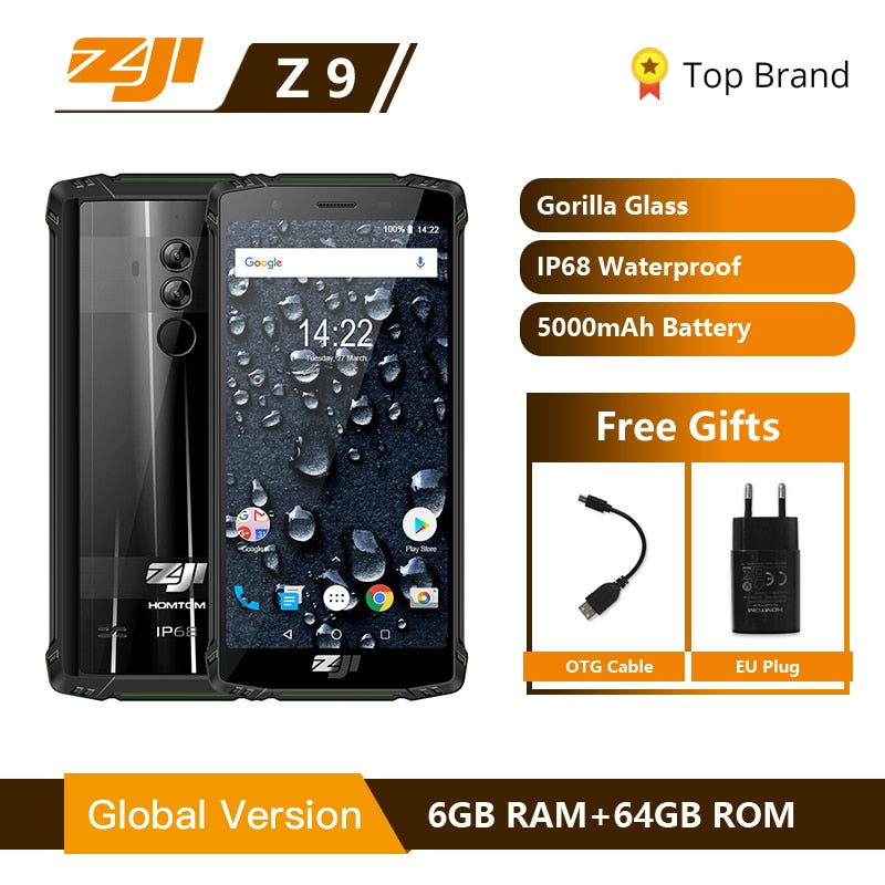 HOMTOM ZOJI Z9 IP68 Waterproof Helio P23 Android 8.1 Octa core Smartphone 5.7" 6GB 64GB 5500mAh Face ID Fingerprint Mobile phone