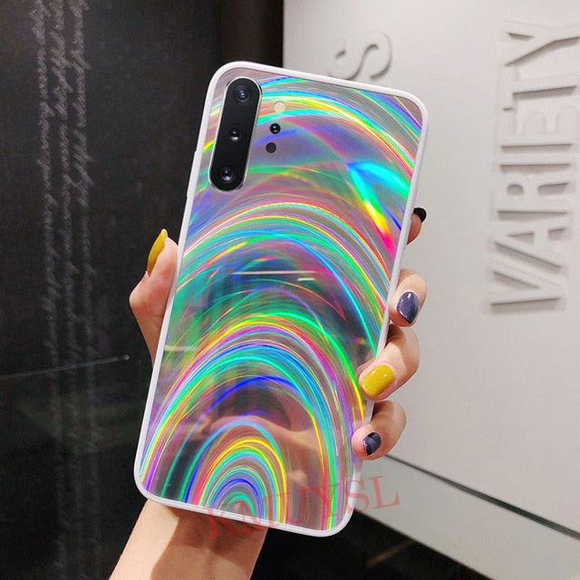 Rainbow Mirror Glossy Case For Samsung Case A30S A20 A50 A70 J8 J6 A6 A7 A9 2018 S8 S9 S10 Note 8 9 10 Plus S10E Cover Shell